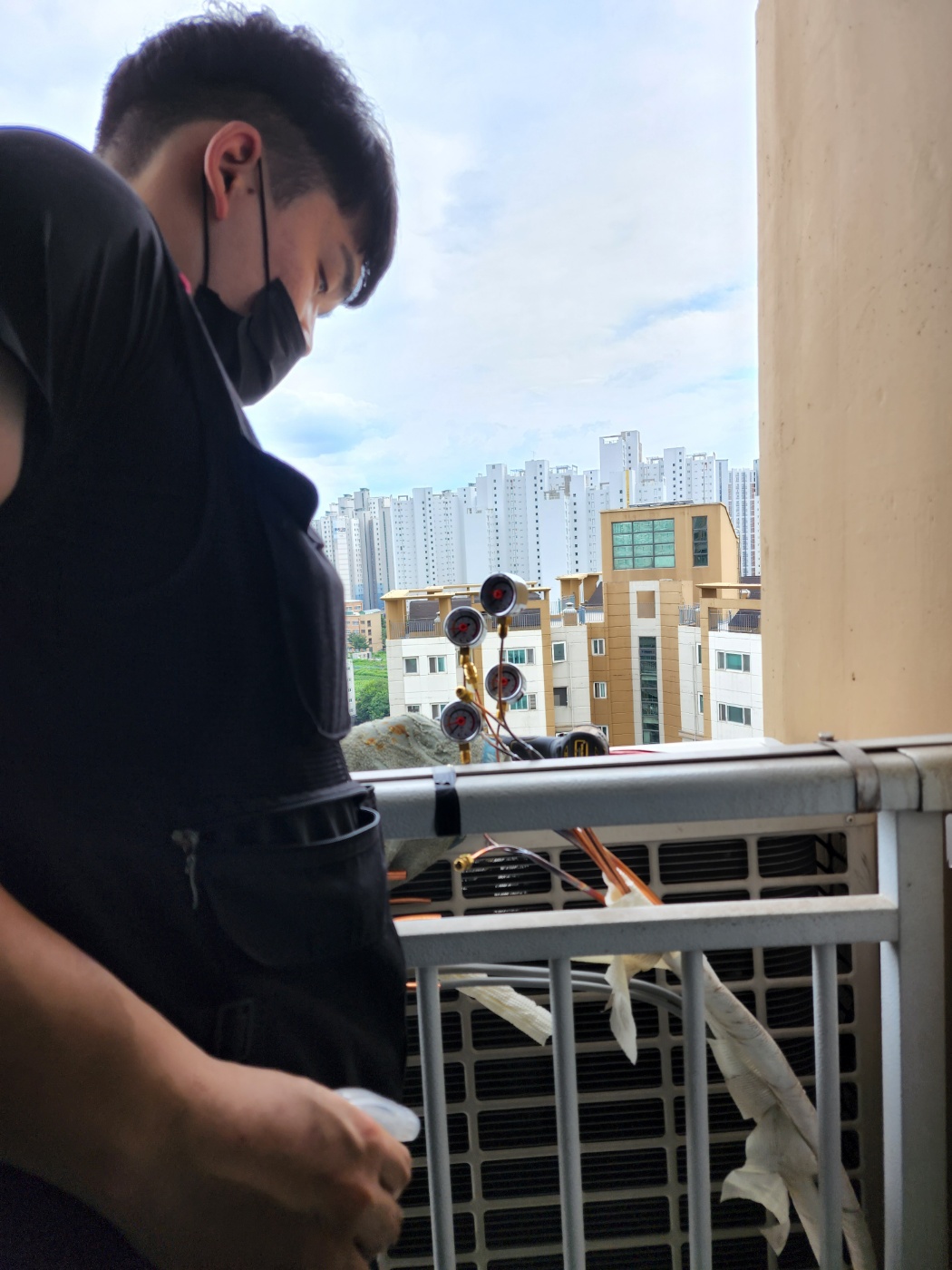 "에어컨 배관이 막혀서 설치를 못 한대요..."