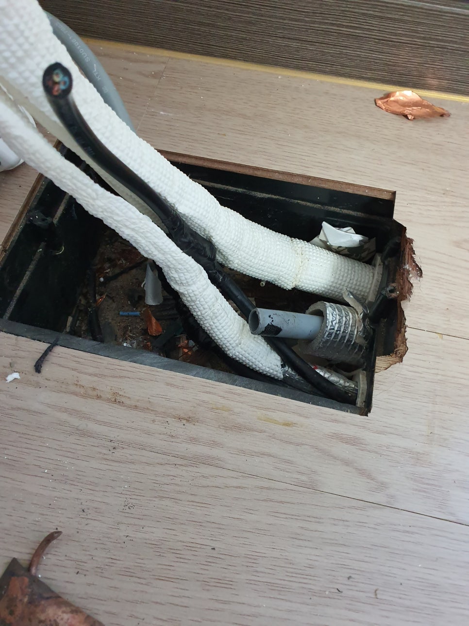 일부 동배관이 꺾여 관경이 찌그러지거나 눌린 부분이 확인되어 에어컨 제조사에서 에어컨 설치를 거부하는 사례도 적잖이 발생되고 있습니다 .