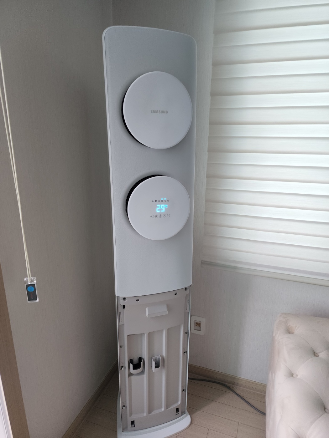 냉매가 원활하게 순환할 수 있는 규격인지, 배수 드레인(물 빠지는 구멍)은 막히지 않고 시원하게 내려가는지 물을 직접 부어 확인합니다. 의외로 드레인 막힘으로 인해 여름철 거실이 물바다가 되는 경우가 많기 때문에 필수적인 과정입니다.