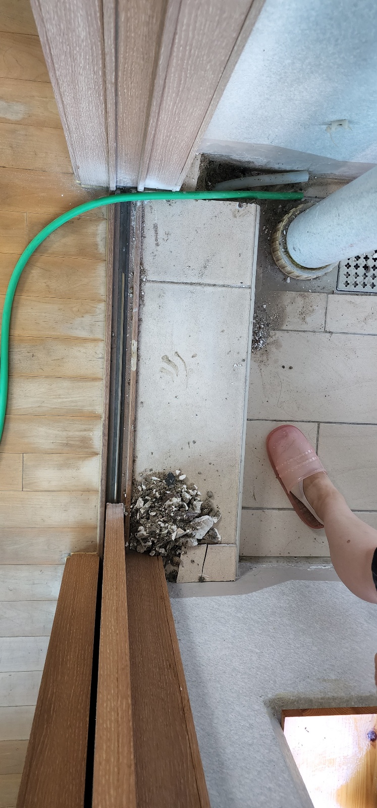 "베란다 배수구로 물이 안 빠지고 거실 바닥이 물에 잠겼어요..."