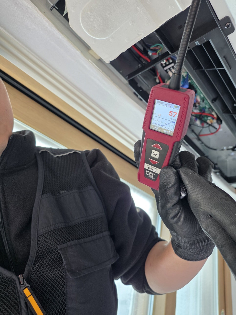 | 전자식 누설 탐지기 | 냉매 특유의 성분을 감지하는 센서로 미세한 누설도 탐지 | ppm 단위의 미량 누설까지 감지 가능 |
