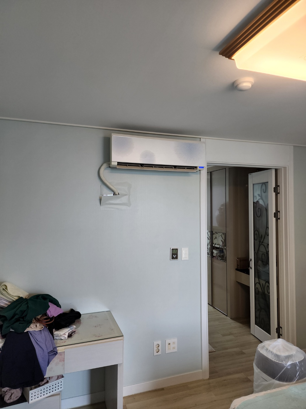 상황: 지어진 지 10년이 지난 아파트로, 이사 후 에어컨을 설치하려고 했으나 배관 문제로 설치가 불가능한 상황이었습니다 .