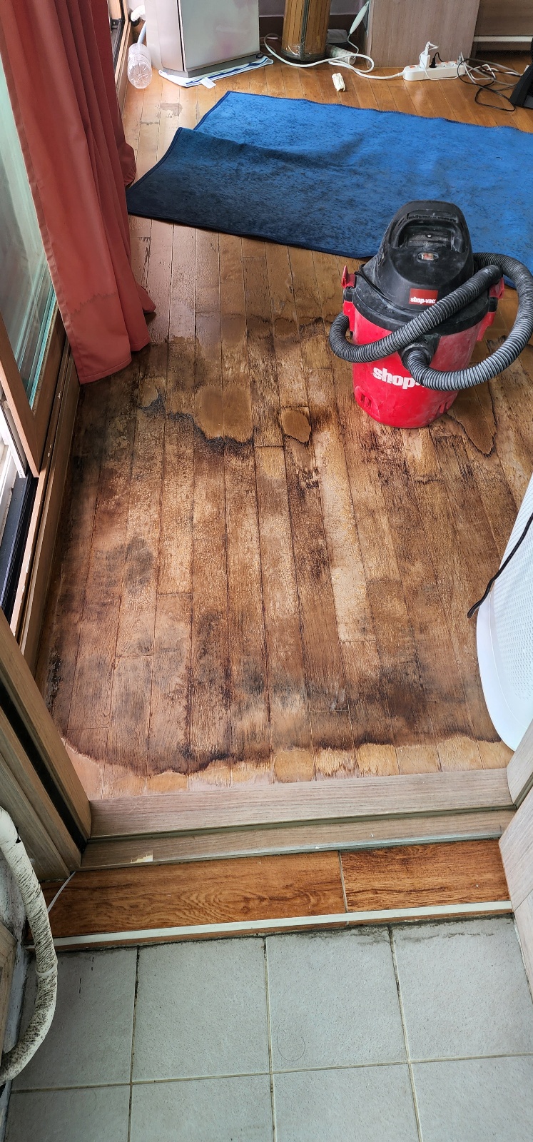 "베란다 배수구로 물이 안 빠지고 거실 바닥이 물에 잠겼어요..."