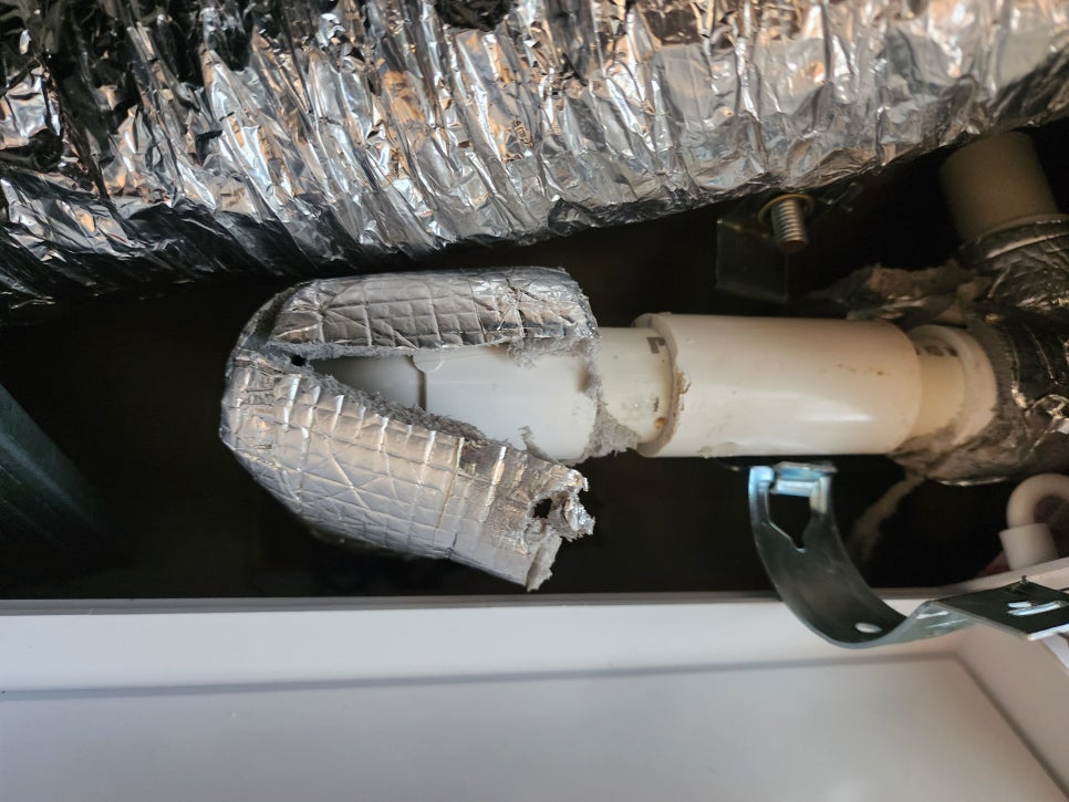 경사 불량: 배수 호스의 경사가 제대로 맞지 않아(역경사, 처짐, 꺾임) 물이 고이거나 역류합니다. 배수 호스는 아래 방향을 향하도록 설치되어야 합니다