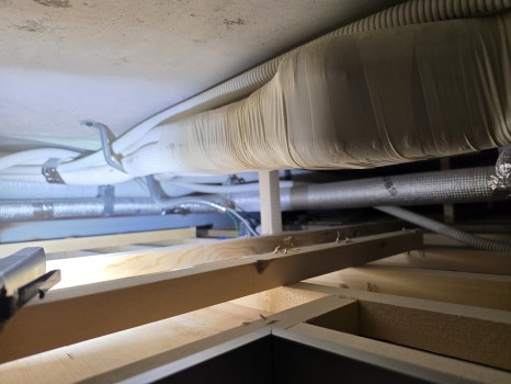 냉매 배관을 감싸는 보온재가 낡았거나, 연결 부위 마감이 불량할 경우 차가운 배관 표면에 물방울이 맺힙니다. 이 결로수는 천장 석고보드를 적시고 곰팡이를 번식시키는 주범이 됩니다.