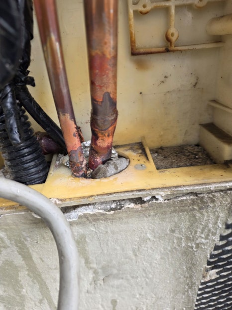 실외기 콤프레셔 파손: 냉매 가스는 단순히 시원하게 만드는 역할만 하는 게 아니라 실외기를 식혀주는 역할도 합니다. 가스가 부족한 상태로 계속 돌리면 실외기의 심장인 콤프레셔가 타버립니다. 배관 수리비의 몇 배가 넘는 실외기 교체비가 발생합니다.