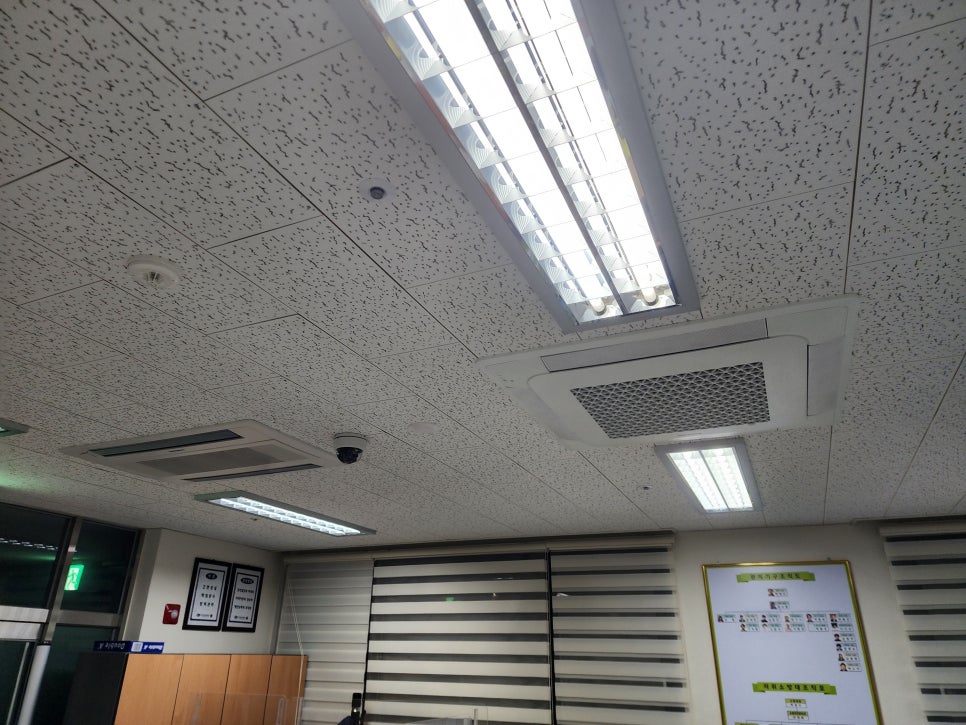 가장 명확한 증상입니다. 에어컨 가동 중 천장 마감재(판넬) 사이로 물방울이 맺히거나 떨어집니다 .