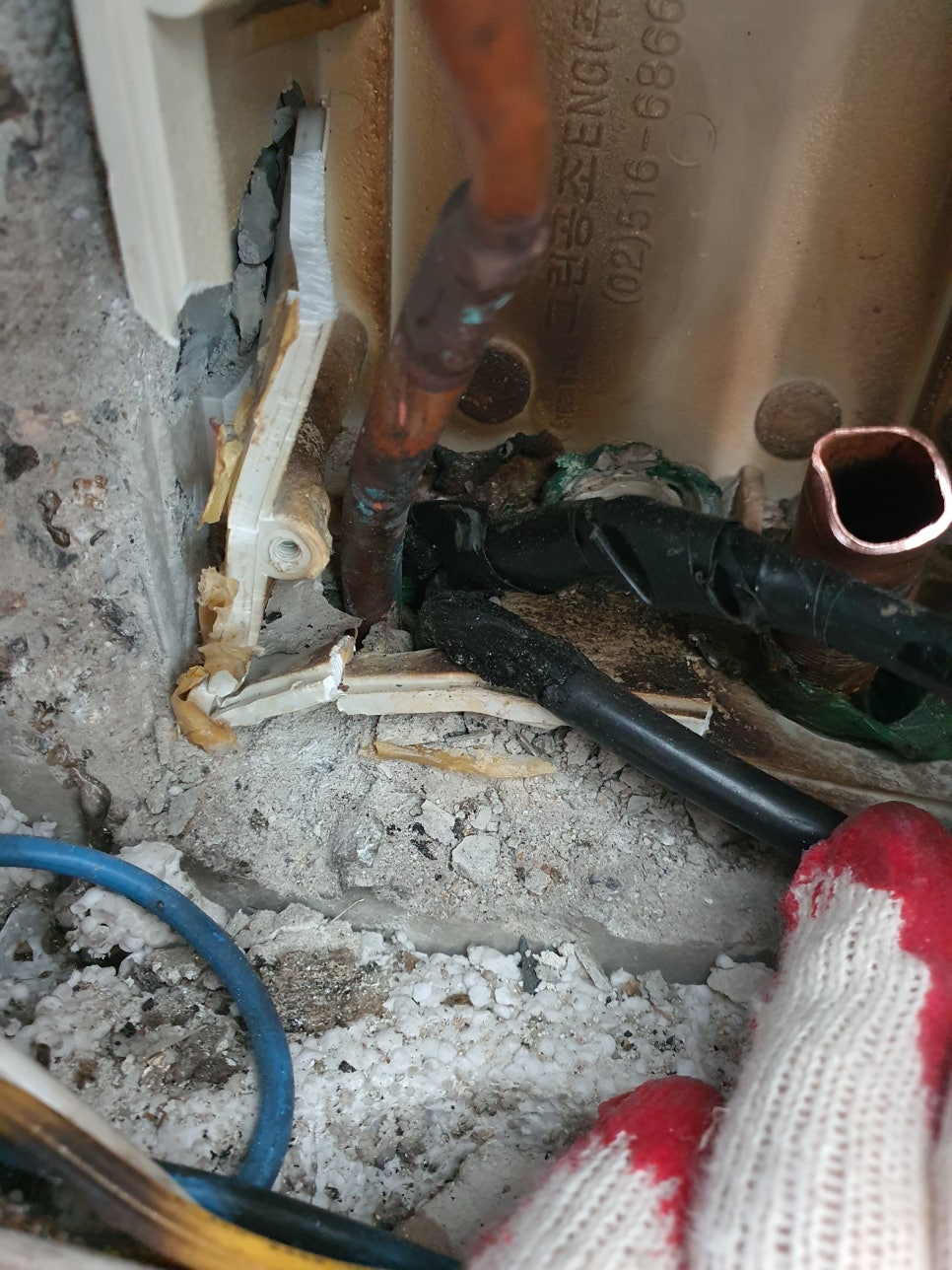 상가나 오래된 주택, 심지어 아파트 저층부의 천장 속에는 종종 쥐 같은 설치류가 돌아다니며 에어컨 배관을 감싸고 있는 푹신한 보온재(단열재)나 플라스틱 호스를 갉아먹는 경우가 발생합니다. 이렇게 외부 요인에 의해 물리적으로 호스에 구멍이 뻥 뚫리거나 보온재가 갈기갈기 찢겨나간 경우, 그 부위로 엄청난 양의 물방울(결로)이 맺혀 떨어지게 됩니다. 훼손된 구간은 세척으로 복구할 수 없으며 즉각적인 에어컨드레인교체가 유일한 정답입니다.