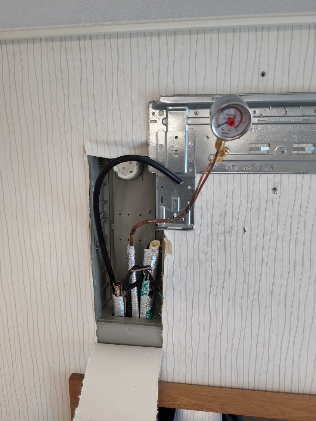 에어컨을 새로 설치하려고 했는데 설치기사님께서 압력계 바늘이 0을 가리킨다며 "매립배관에 문제가 있으니 검사와 수리를 먼저 받아야 한다"고 하는 경우가 있습니다 . 이는 배관 내부에 질소가스를 넣었을 때 압력이 유지되지 않고 누수되고 있다는 증거입니다.