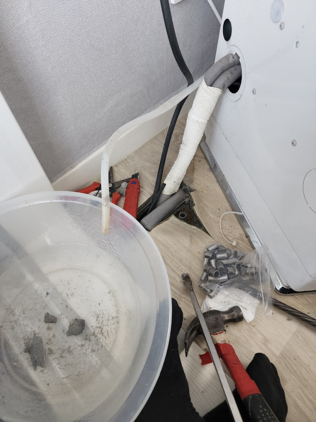 세입자가 바뀌면서 에어컨 철거와 설치가 이루어질 때마다 배관을 만지고 건드리면서 데미지가 작게라도 누적됩니다 . 그러면서 딱딱했던 배관 내구성이 약해지고 결국 누수가 발생됩니다 .