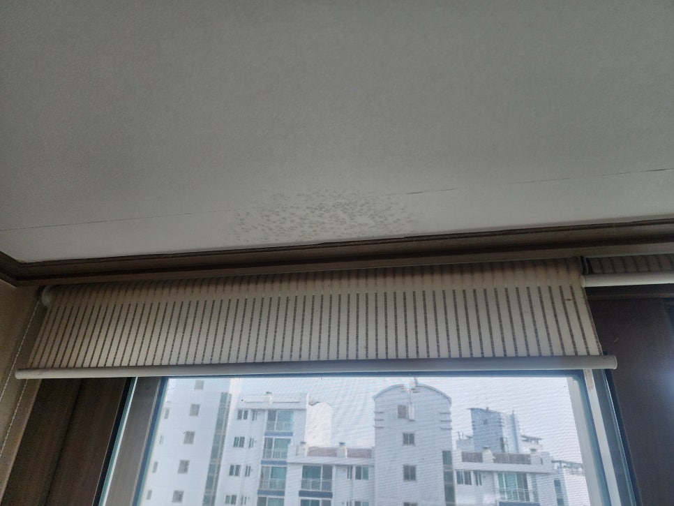 천장 도배지 훼손 및 곰팡이: 호스가 막혀 넘친 물은 천장 석고보드를 먼저 적십니다. 눈에 띌 정도가 되면 이미 천장 내부에는 시커먼 곰팡이가 가득한 상태입니다.