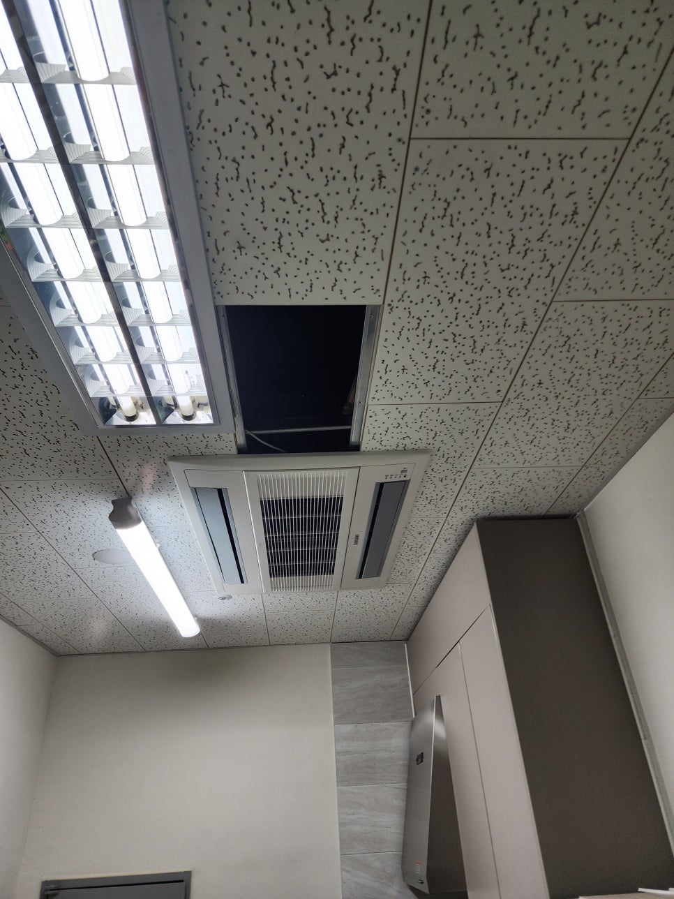 가장 명확한 증상입니다. 에어컨 가동 중 천장 마감재(판넬) 사이로 물방울이 맺히거나 떨어집니다 .