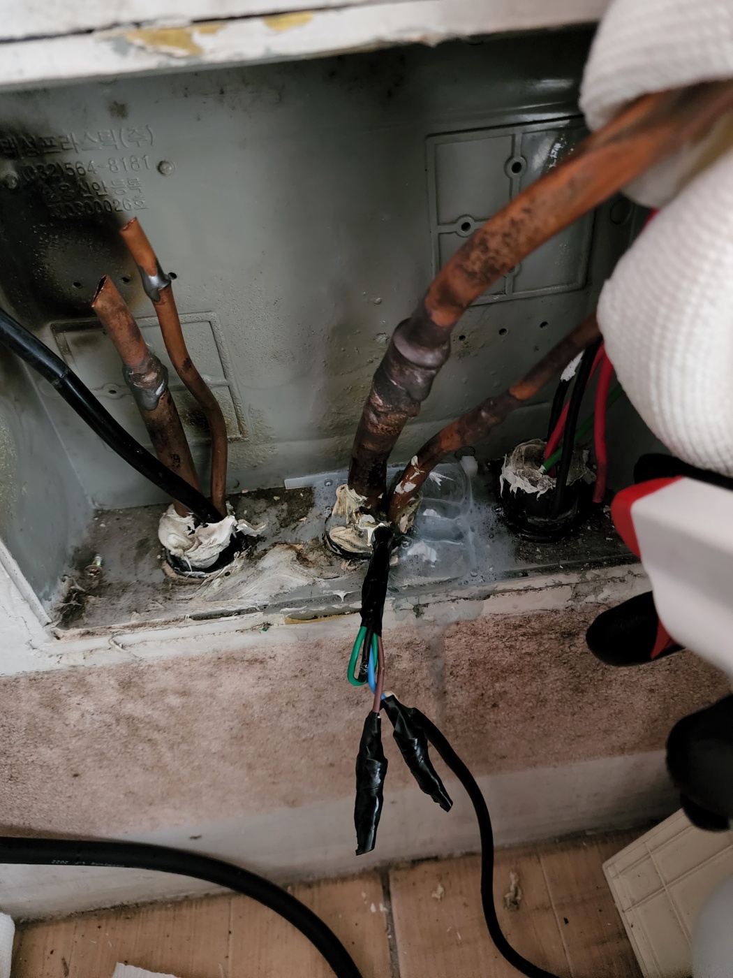 냉매가 원활하게 순환할 수 있는 규격인지, 배수 드레인(물 빠지는 구멍)은 막히지 않고 시원하게 내려가는지 물을 직접 부어 확인합니다. 의외로 드레인 막힘으로 인해 여름철 거실이 물바다가 되는 경우가 많기 때문에 필수적인 과정입니다.