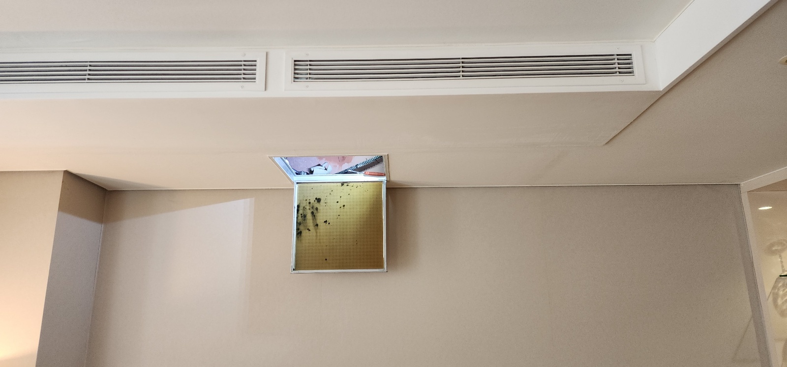 천장형 시스템 에어컨은 모든 배관과 호스가 천장 석고보드 안쪽에 숨겨져 있기 때문에, **'천장형에어컨물호스누수'**가 발생하면 육안으로 정확한 위치를 파악하기가 매우 어렵습니다. 방치하면 우리 집 거실 마루가 썩는 것은 물론, 아랫집 천장까지 침투해 수백만 원의 누수 피해보상을 해줘야 하는 끔찍한 상황으로 이어지기도 합니다.