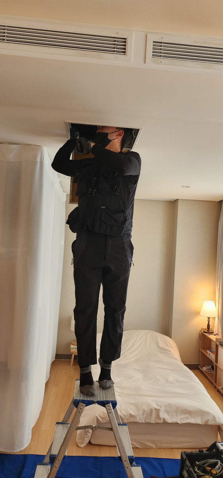 천장형 시스템 에어컨은 모든 배관과 호스가 천장 석고보드 안쪽에 숨겨져 있기 때문에, **'천장형에어컨물호스누수'**가 발생하면 육안으로 정확한 위치를 파악하기가 매우 어렵습니다. 방치하면 우리 집 거실 마루가 썩는 것은 물론, 아랫집 천장까지 침투해 수백만 원의 누수 피해보상을 해줘야 하는 끔찍한 상황으로 이어지기도 합니다.